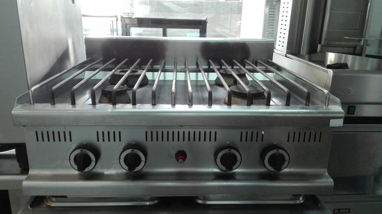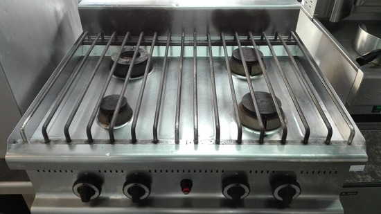 Διαθέτει ανοξείδωτη σχάρα  επάνω από τις εστίες, διευκολύνοντας έτσι την εύκολη μετακίνηση μεγάλων σκευών από τη μία εστία στην άλλη, καθώς και τη δυνατότητα χρήσης μικρού ή μεγάλου σκεύους.