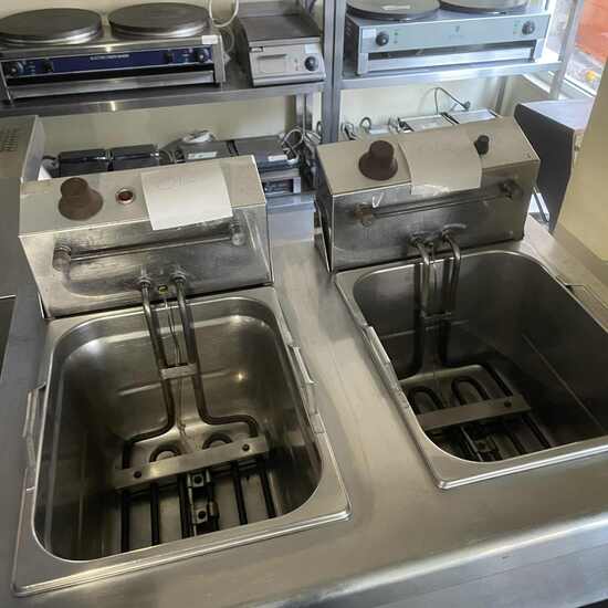 Φριτέζα διπλή με αποσπώμενη ηλεκτρική κεφαλή, θερμοστάτη 90-200oC, θερμικό ασφαλείας και αποσπώμενο κάδο.