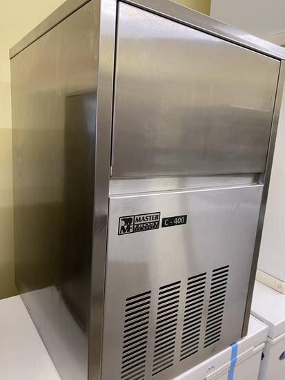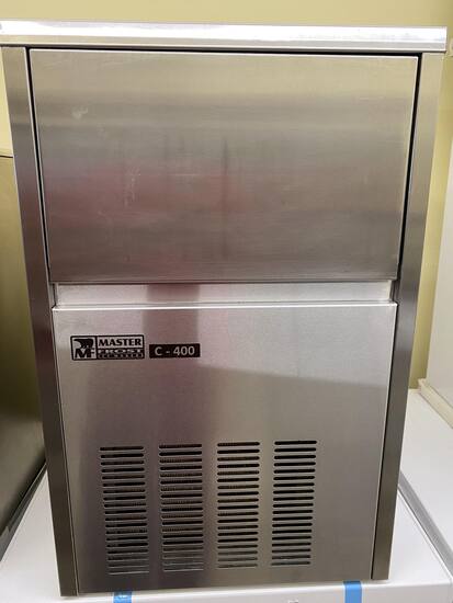 Παγομηχανή 40kg/24h C400 Masterfrost για παγάκι με τρύπα. Η μηχανή δεν χρησιμοποιεί by-pass για την αποκόλληση του πάγου αλλά ζεστό νερό το οποίο θερμαίνεται από τον συμπιεστή, με αποτέλεσμα την μεγαλύτερη διάρκειας ζωής συμπιεστή.